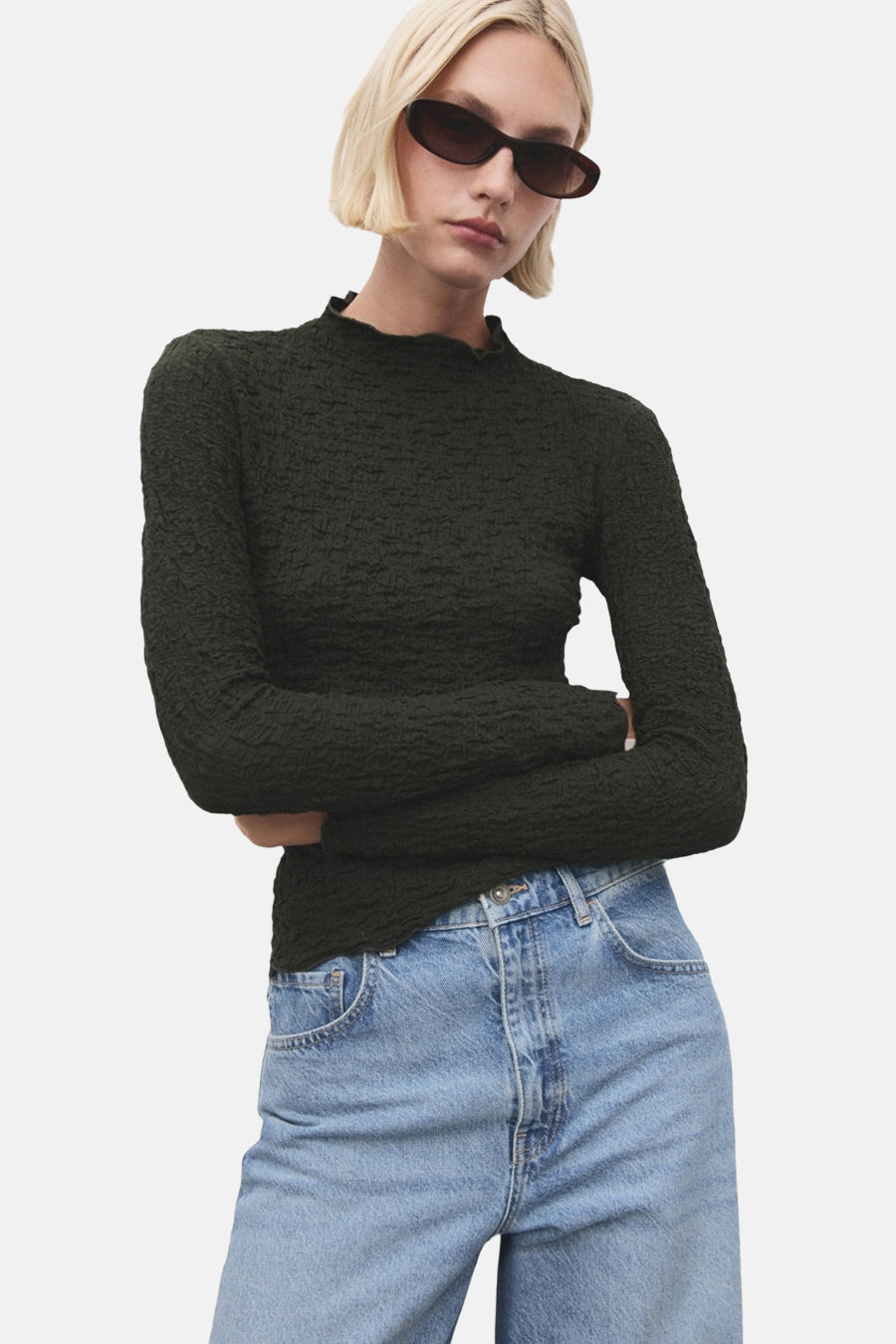 MANGO T-shirt met lange mouwen - khaki