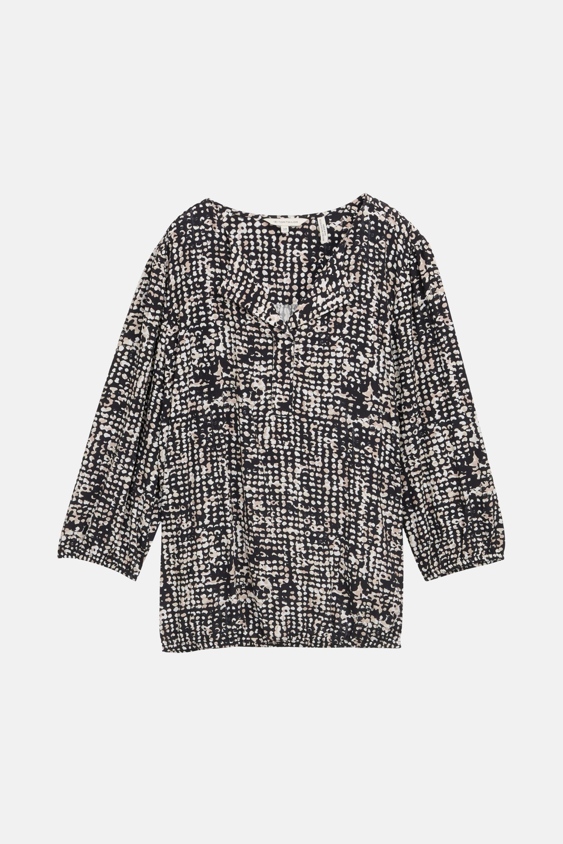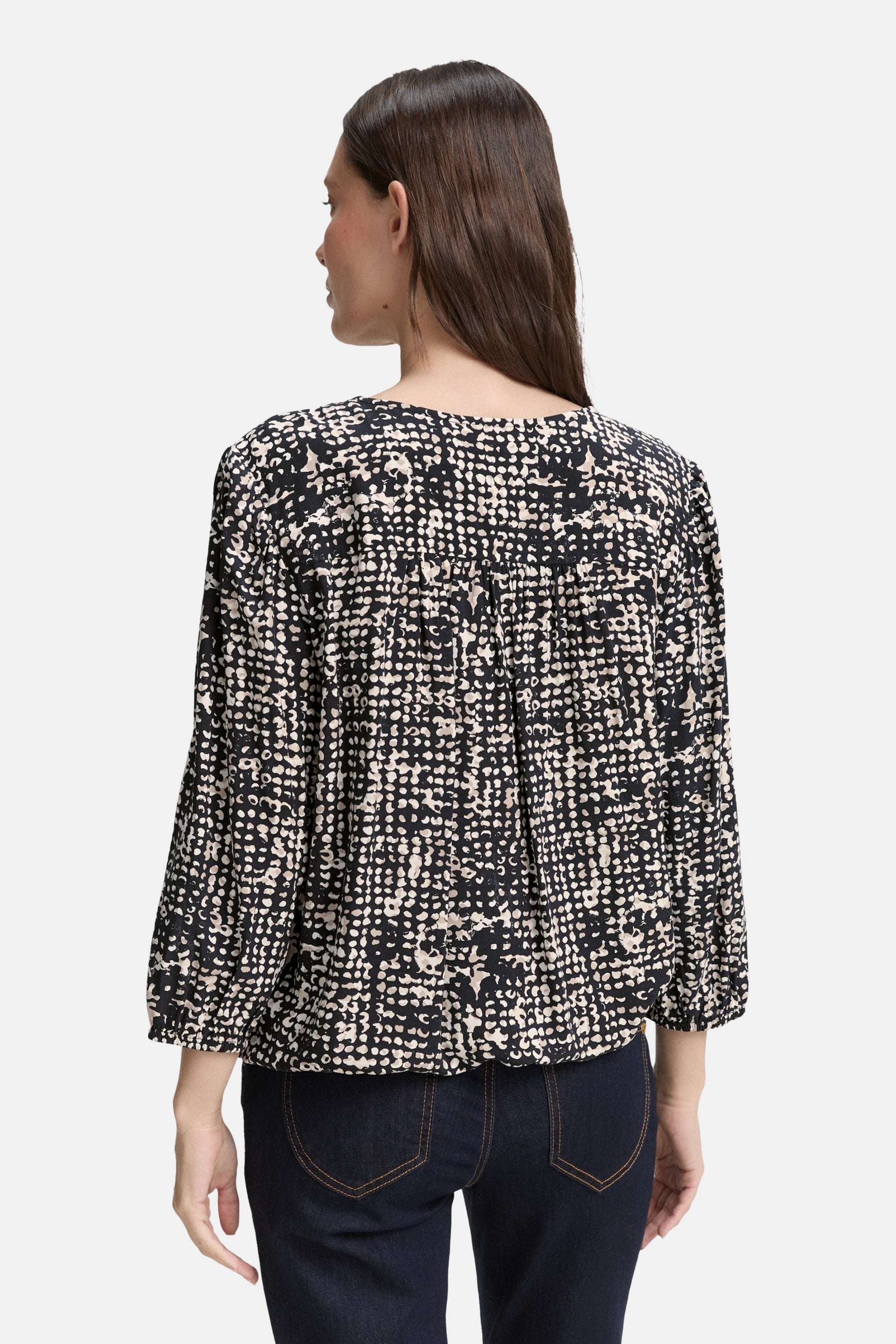 Beschrijving: * Blouse van viscose met 3/4-mouwen en een V-hals. Met een elastische tailleband aan de onderkant en lichte plooien op de schouders en op de rug.