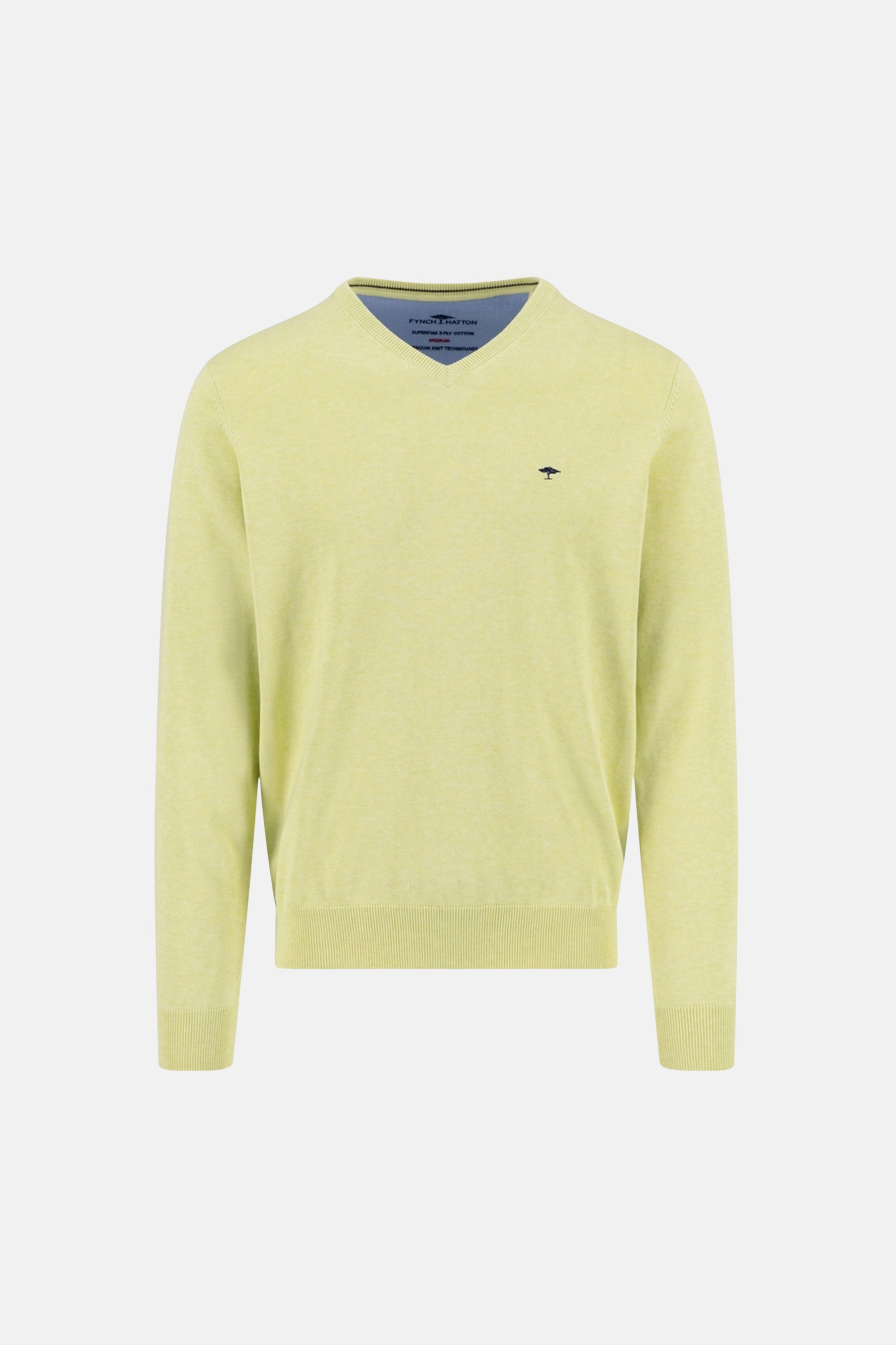 Pull à col en V vert par FYNCH-HATTON avec logo discret.