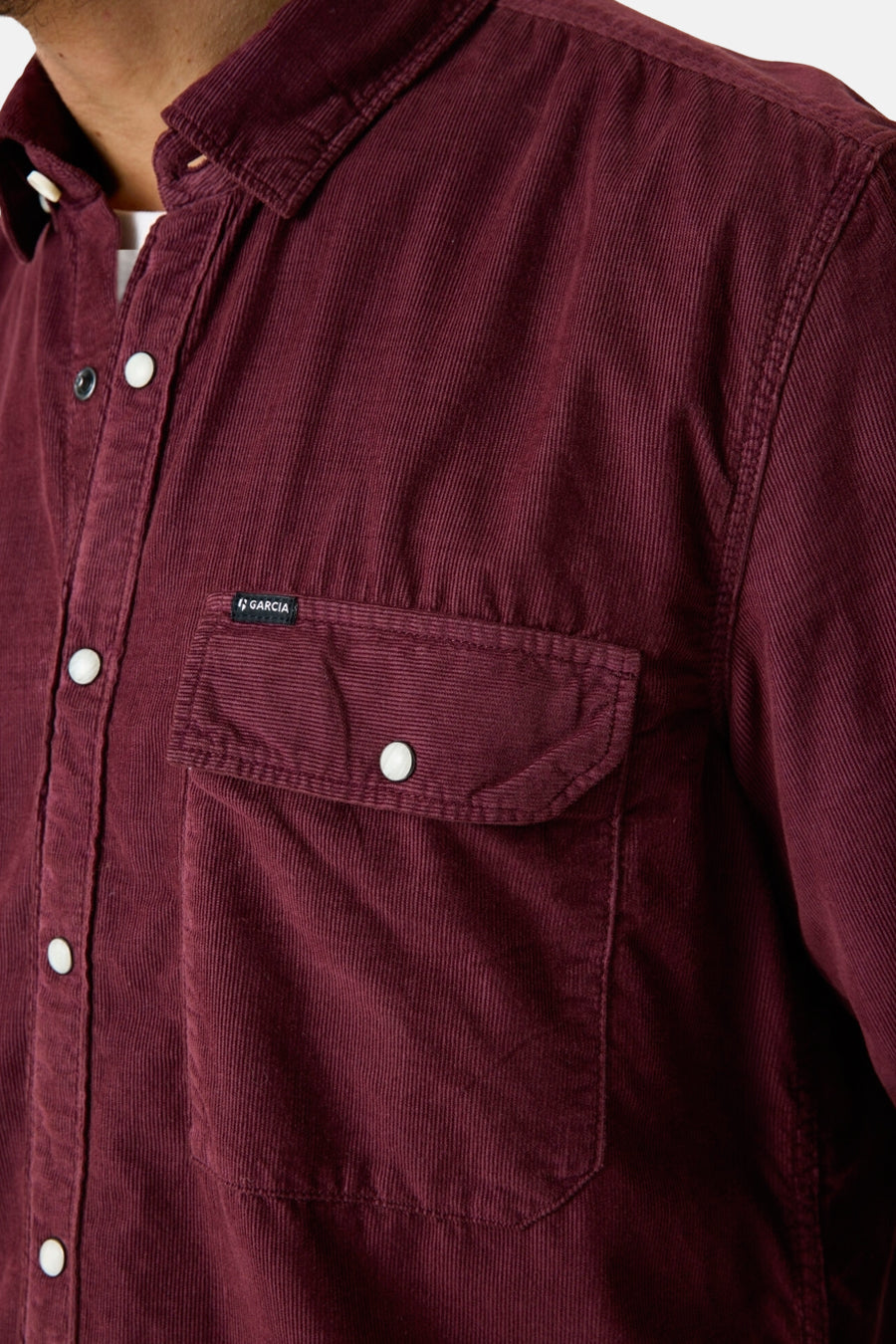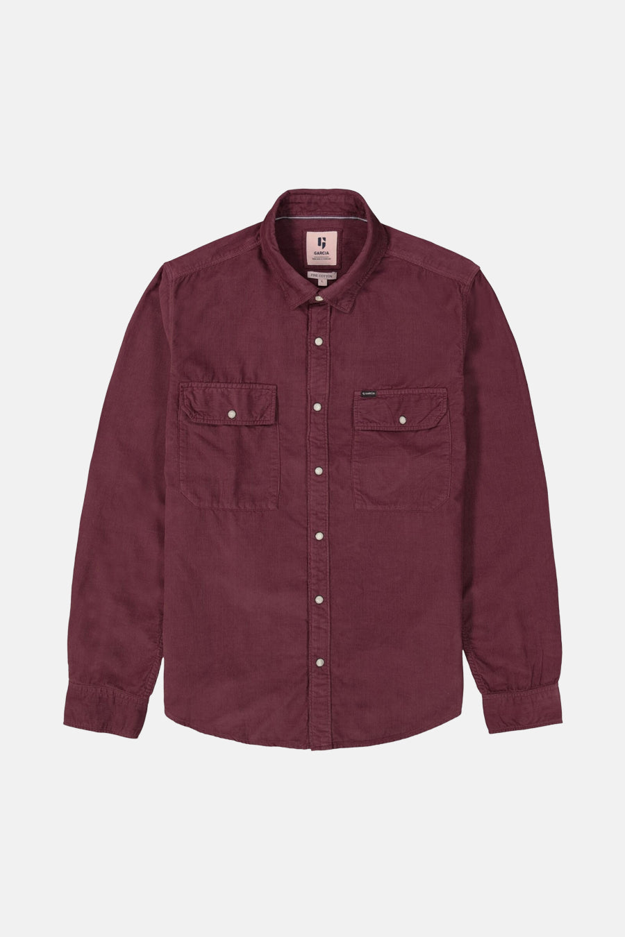 Chemise bordeaux à manches longues de GARCIA, en velours côtelé avec poches à rabat boutonnées.