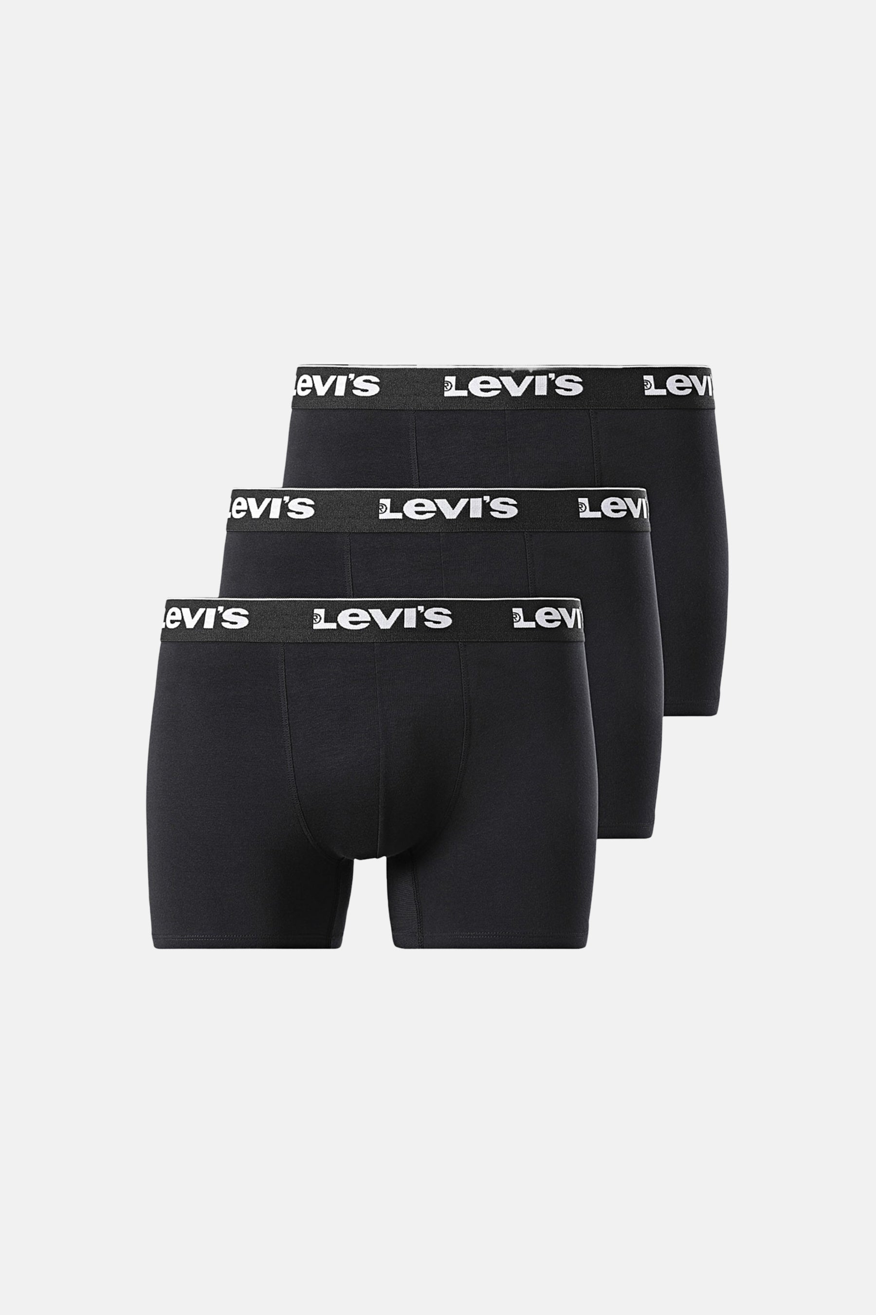 Lot de trois boxers noirs de Levi's, avec une ceinture élastique portant le logo de la marque en blanc.