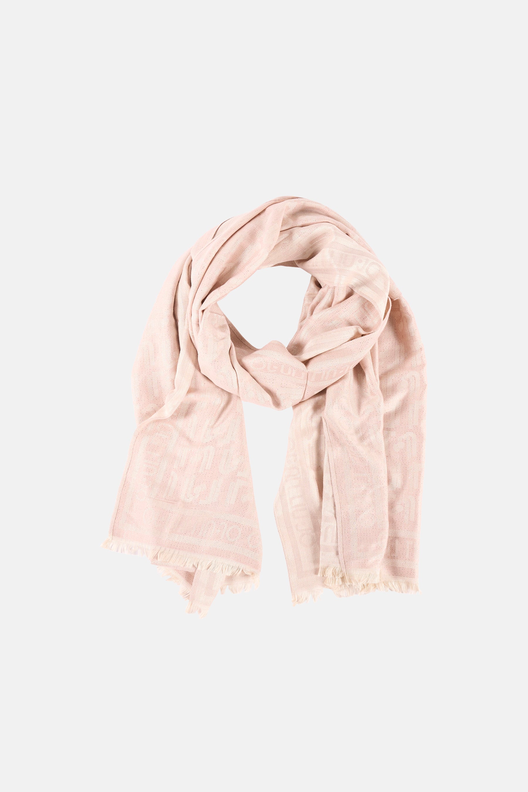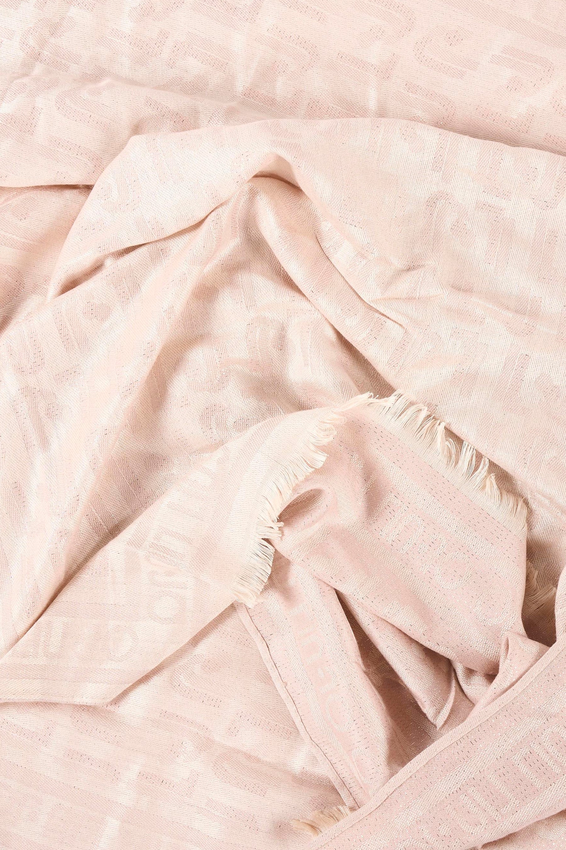 Foulard beige de LIU JO, à motif logo ton sur ton et finitions frangées.