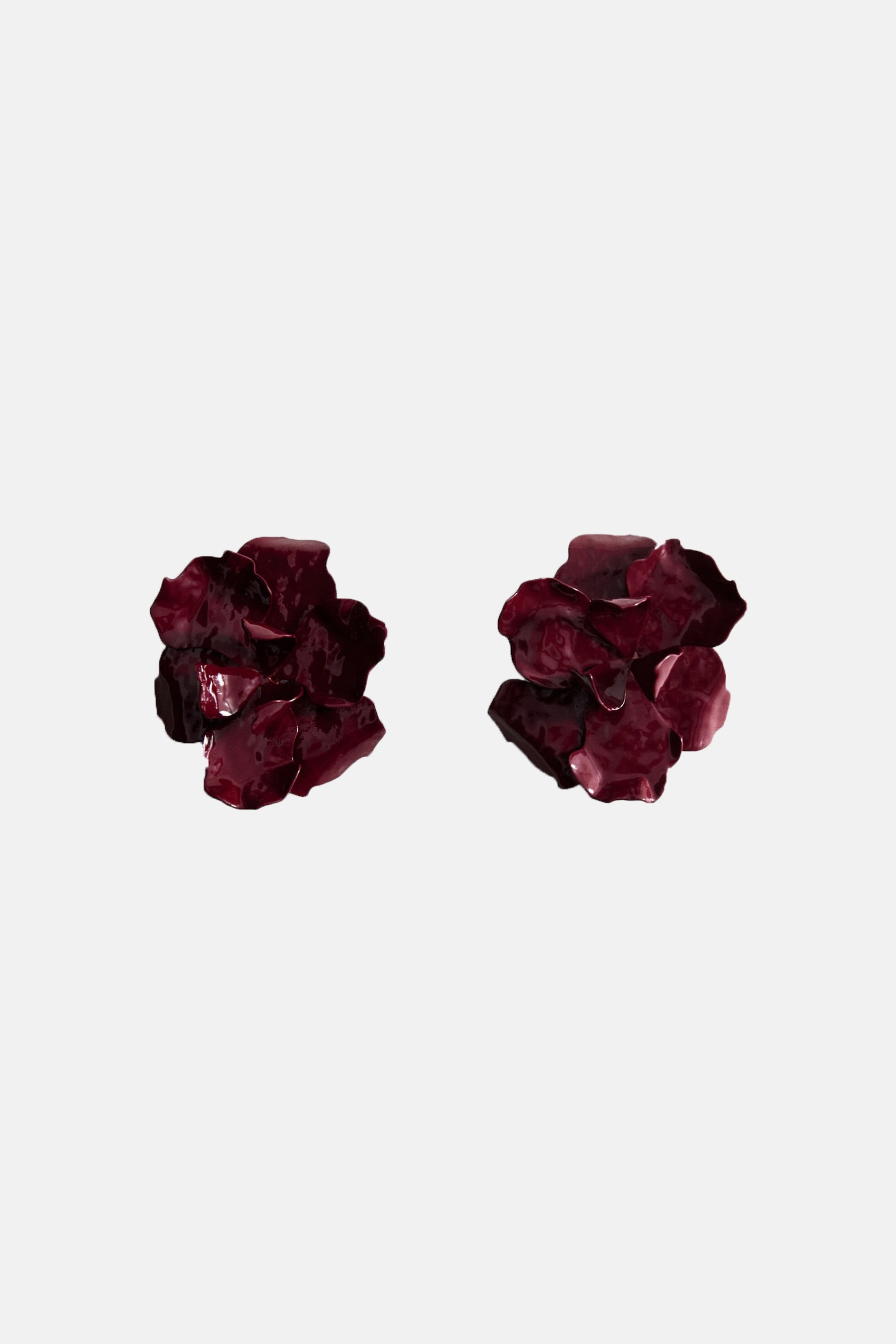 Boucles d'oreilles bordeaux de MANGO, en forme de fleur avec une texture brillante.