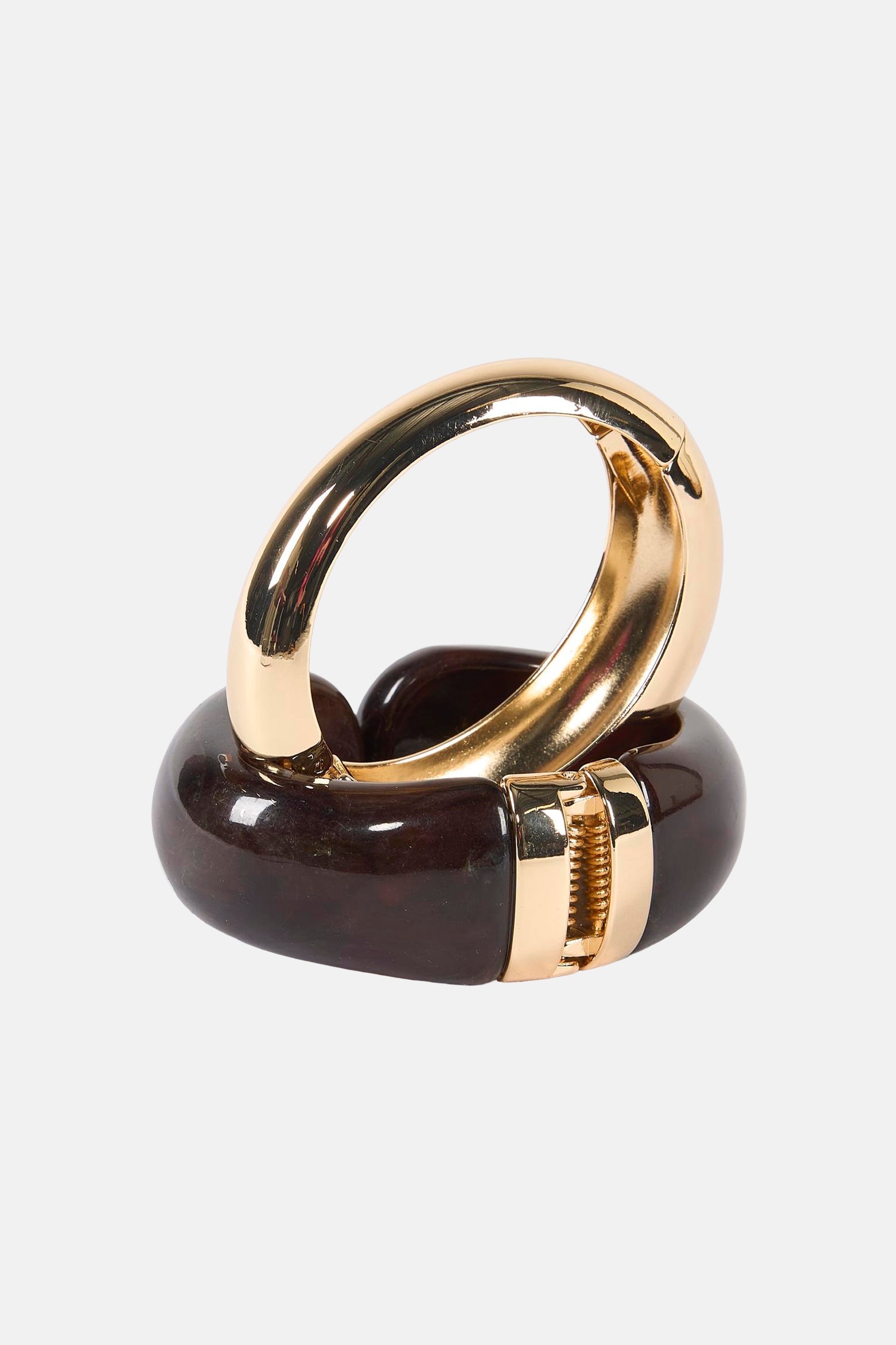 Bracelets ouverts dorés et marron by MANGO, avec fermeture à ressort et effet d'écaille.