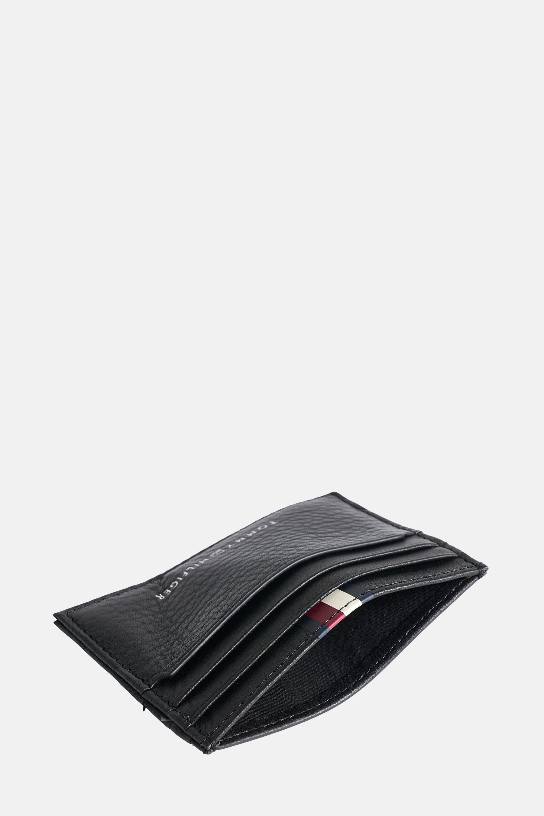 Porte-monnaie noir en cuir by TOMMY JEANS avec la rayure signature tricolore.